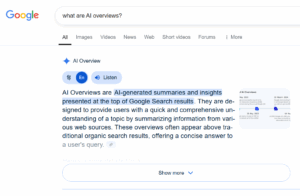 Google has its own intelligent search engine that analyzes all the sources available on Google and external websites to provide quick answers to user queries. This feature is called AI Overviews. When you search for something on Google, these AI overviews appear even before the top organic rankings, hence resulting in zero-click searches.