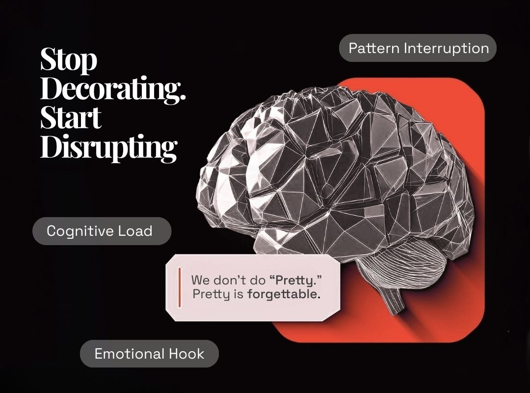 We don’t do “Pretty.” Pretty is forgettable. We design Psychological Triggers that force the eye to stop, the brain to process, and the finger to click.